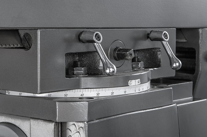 Для удобства работы фрезерная головка имеет механизм наклона влево или вправо в вертикальной плоскости на 90° и поворота консоли на 360° в горизонтальной плоскости.