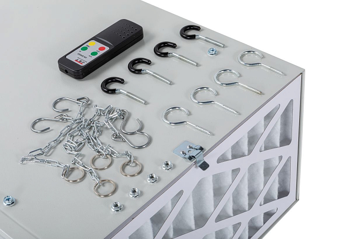 AFS-865 компактная установка, которую можно использовать в любом месте помещения и переставлять при необходимости. Её можно разместить прямо в месте наибольшей запыленности или подвесить в центре мастерской, чтобы обеспечить равномерный воздухообмен. В комплекте поставки есть все необходимое для использования.