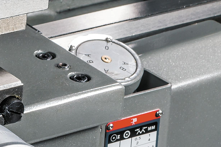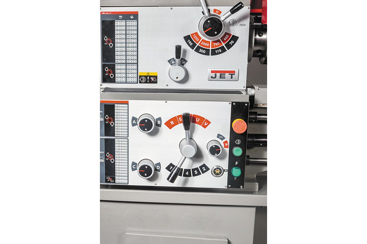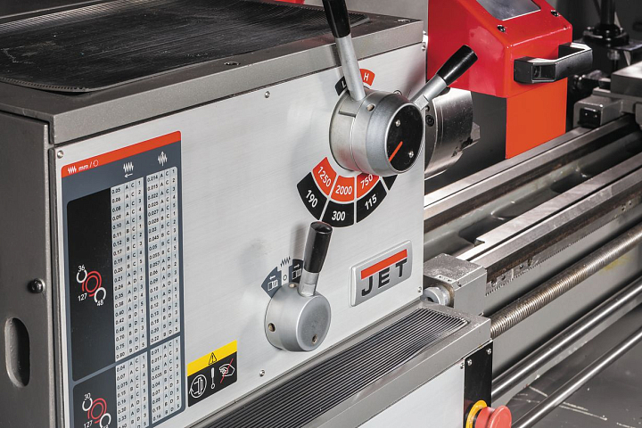 GHB-1340A DRO выполнен по двухвинтовой схеме. Для нарезания резьбы используется ходовой винт, для автоматического точения - ходовой вал. На станке возможна регулировка зазоров направляющих при помощи клиновых планок, конструкция задней бабки позволяет обтачивать конические заготовки. Для облегчения механического переключения режимов на GHB-1340A DRO применяется толчковый (импульсный) режим пуска двигателя.