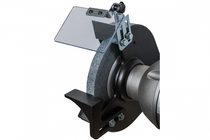 В комплект станка входят шлифовальные круги размером 250х25мм, шарошка для правки кругов, защитные экраны, которые крепятся на каждый кожух.