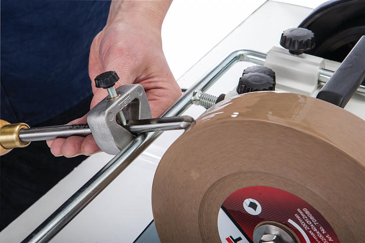 Приспособление-стопор для фиксации угла заточки при удержании инструмента вручную. Работа производится с опорой на штангу SA-1. Подходит для стамесок с полукруглой, овальной или V-образной формой кромки, пробойников и т.п.