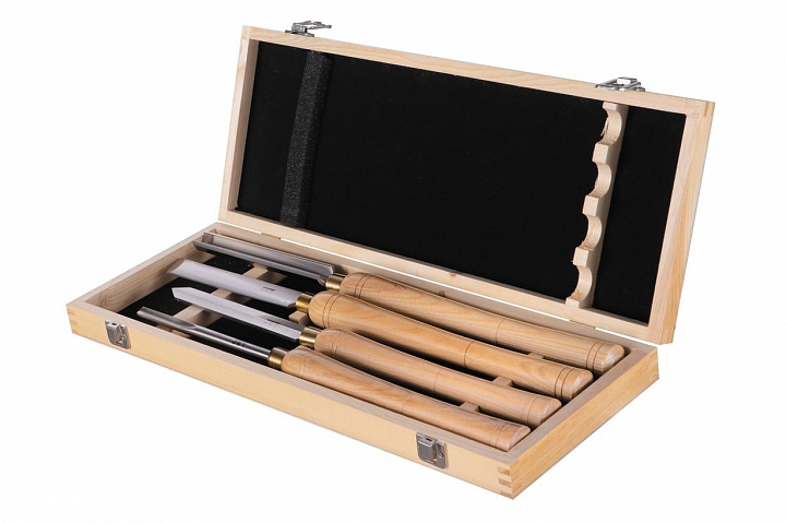 Набор токарных резцов HSS с длинной рукояткой из ясеня в деревянной коробке